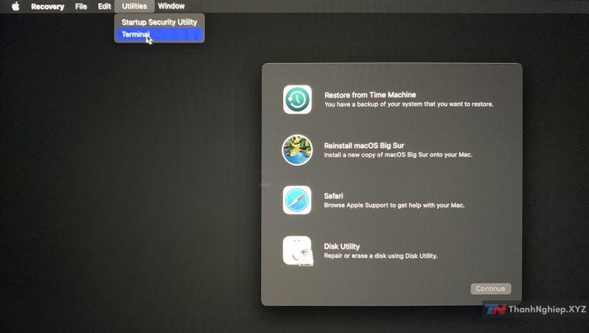 - Vào Utilities > Terminal